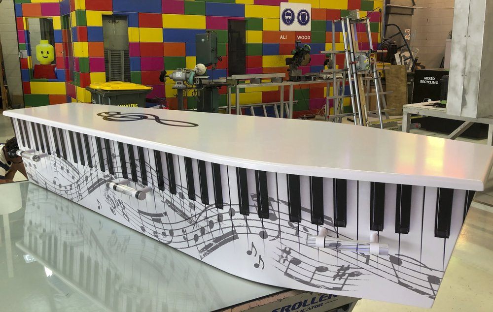 Șase luni mai târziu, Hall, a cărui altă afacere este o companie de semnalizare și grafică, a decis să devină serioasă. S-a apropiat de câțiva directori funerari care l-au privit cu interes și scepticism. Dar, în timp, ideea a prins. Sala începe cu sicrie necompletate și folosește plăci din fibră și placaj pentru a adăuga detalii. Pentru designuri este utilizată o imprimantă digitală din latex. Unele comenzi sunt deosebit de complexe, cum ar fi velierul, care a inclus o chilă și cârmă, cabină, pânze, chiar și balustrade metalice și scripeți.